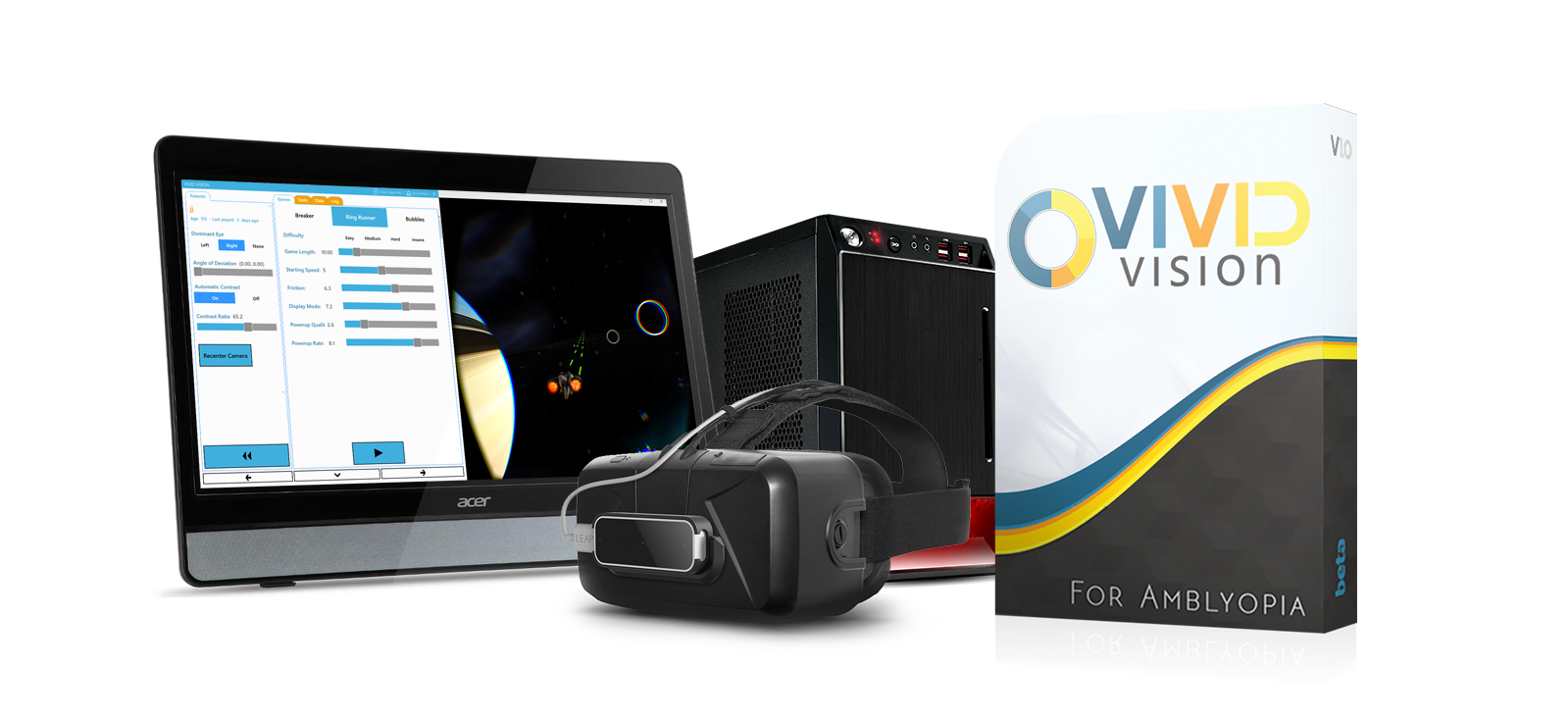 The Vivid Vision for Amblyopia bundle. Comes with a top of the line mini ITX desktop computer, touchscreen monitor, Oculus Rift virtual reality HMD, xbox controller, leap motion controller, and more!