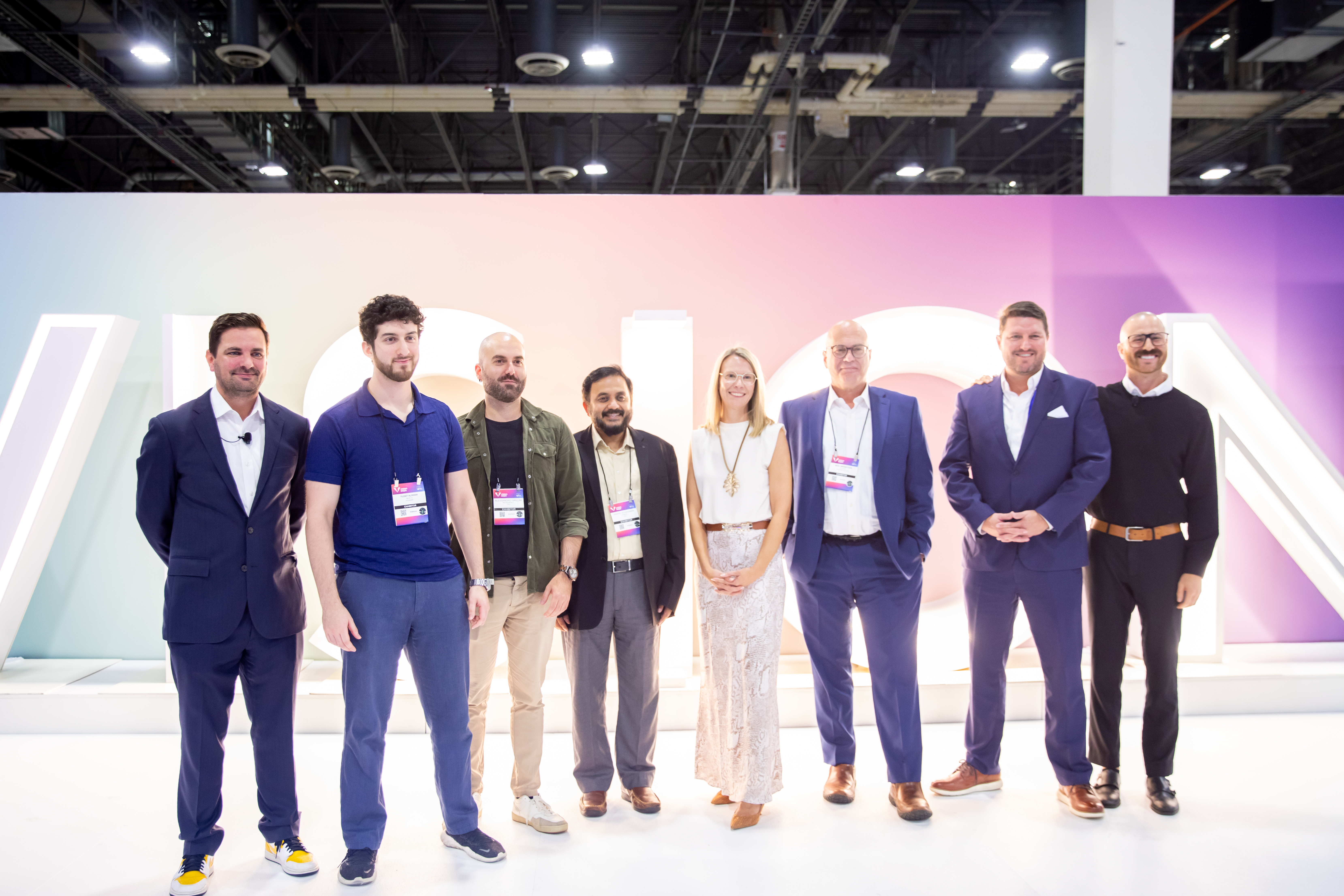 Kelin Kushin on stage at Vision Expo West 2025 with other finalists of the VSP Innovation Challenge